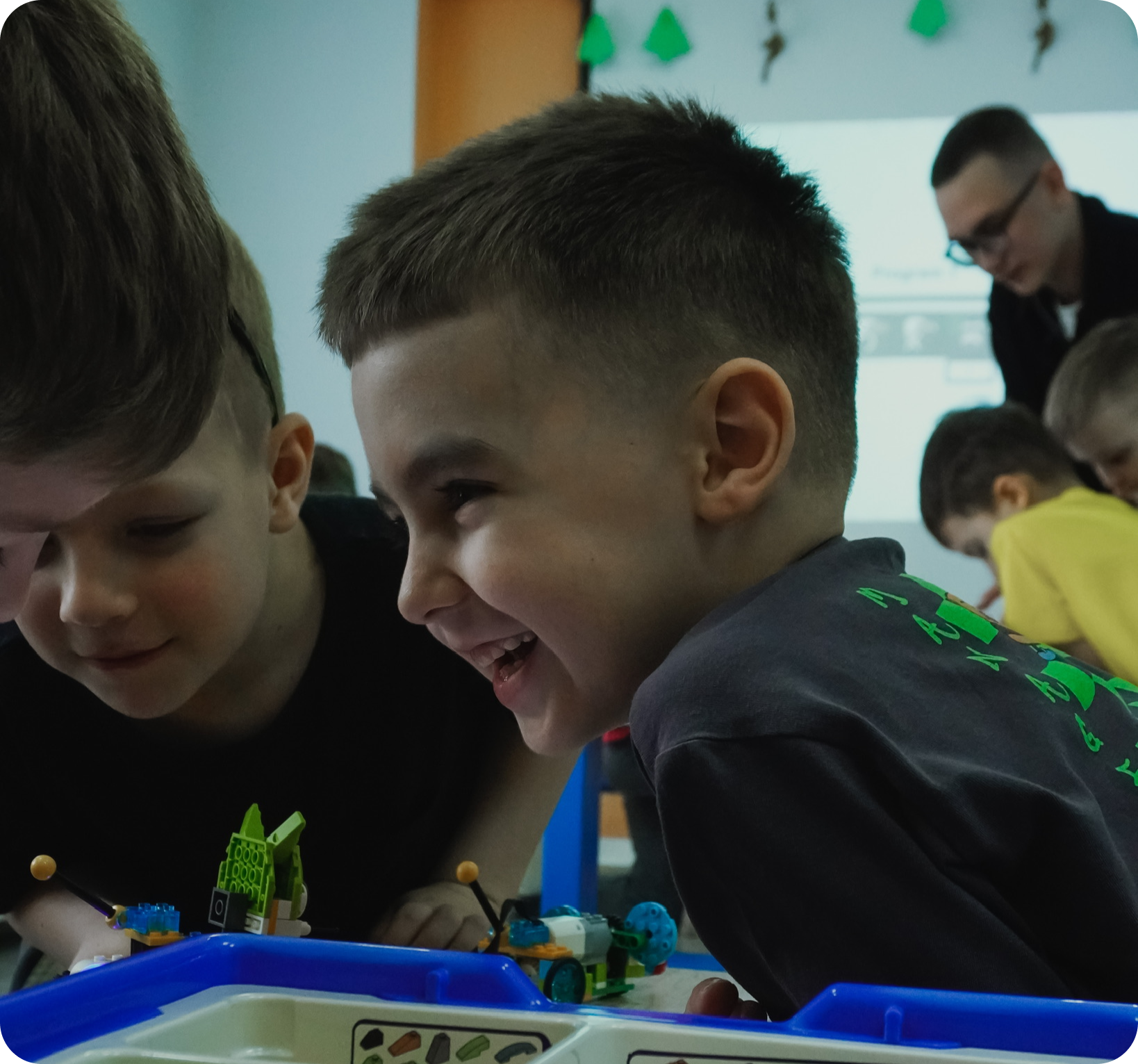 2. Затем следует практическая часть, где дети занимаются конструированием и программированием роботов.